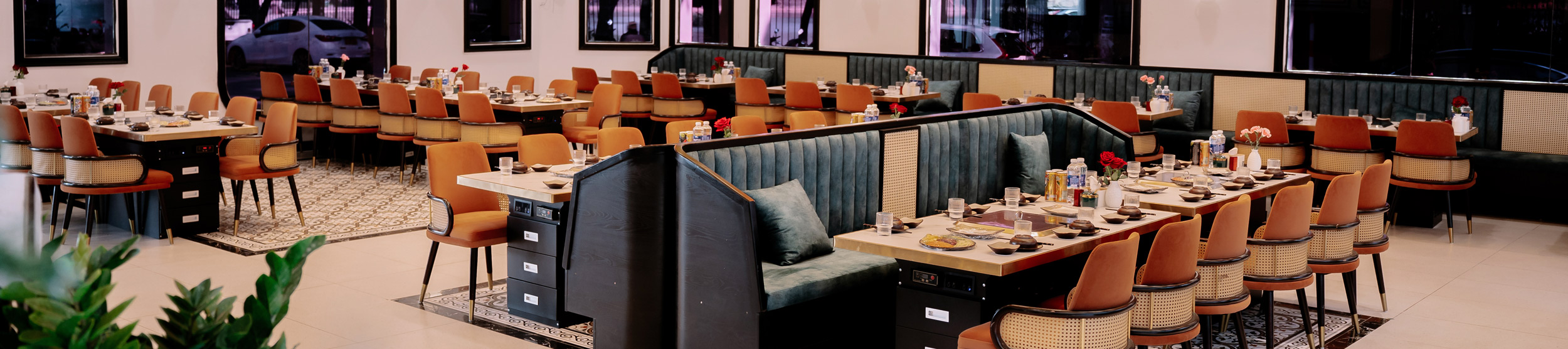 Located on the 5th floor of Satra Center Mall, Buffet Poseidon District 6 stands out with its open, airy space, delicate design with soft yellow lighting and scientific layout. The restaurant can serve more than 300 diners at the same time, ideal for family meals, meeting friends or company parties.
