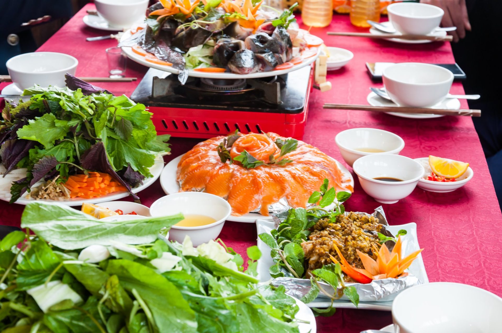 Salmon and sturgeon hotpot is always a favorite combo of diners when coming to Sapa Moment Romantic restaurant