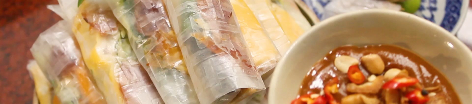 Currently, the cow has two main variants: sweet pumpkin and salty pumpkin. If the North, especially in Hanoi, prefer the sweet version with coconut candy, sesame, plastic rice paper … then the South people have special love for salty pumpkin. This dish is a delicate combination of coated eggs, sausages, cassava tubers, carrots, lettuce, dried shrimp and herbs, all sliced ​​and tightly rolled in thin layer of rice paper.