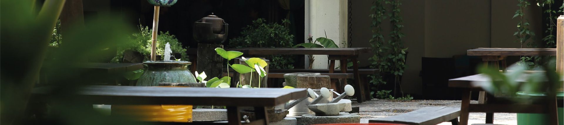 Coming to An vegetarian restaurant & cafe, you will dine in a space with lots of green trees