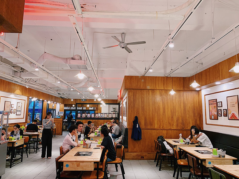 With 8 branches, Spicy Box is the most familiar tokbokki hot pot restaurant with young people in Saigon. This brand invests heavily in locations, most of which are located in large shopping centers. Thanks to that, the restaurant space is very modern, eye-catching location, bringing the most comfortable experience for diners.